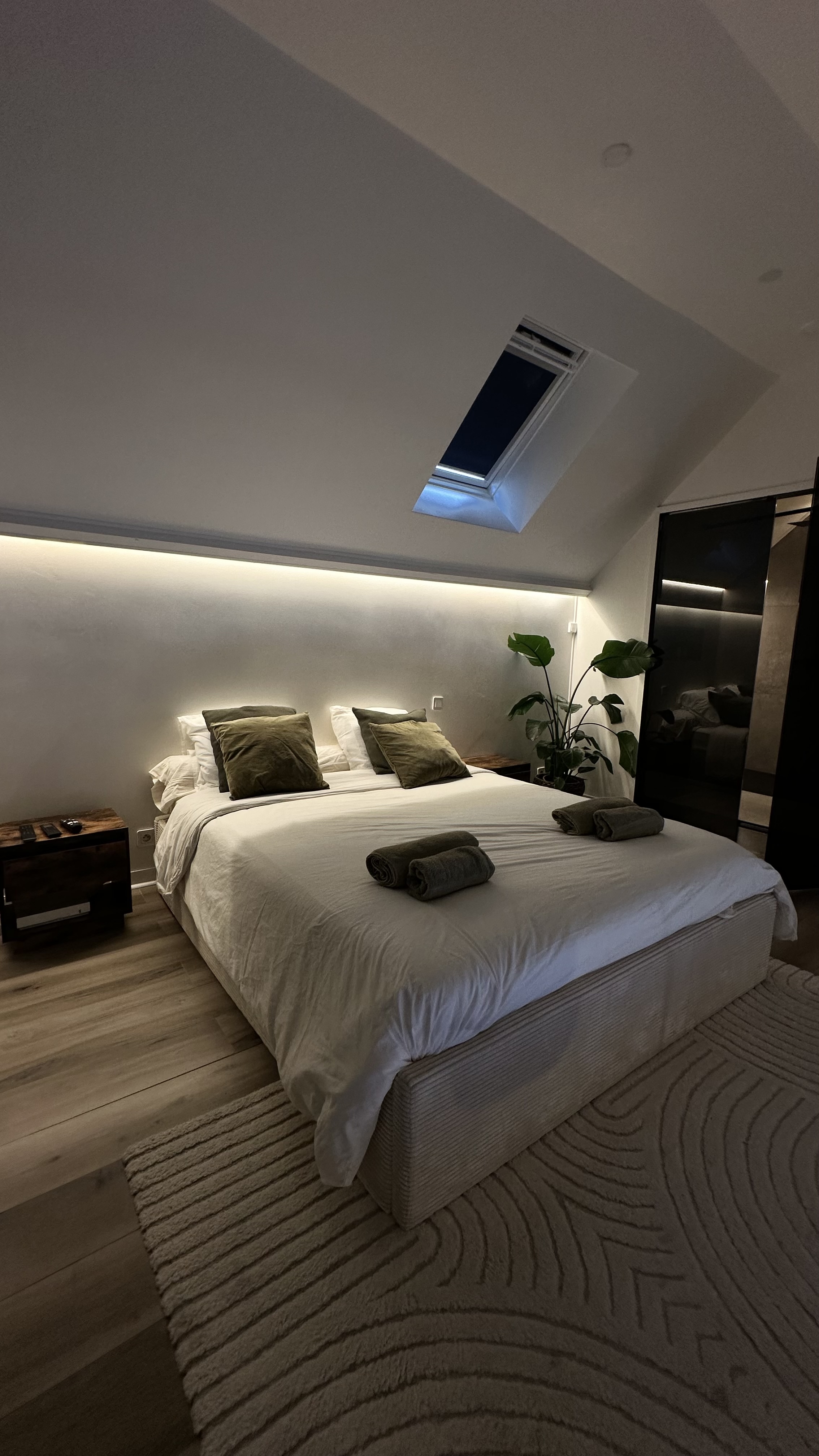 Suite atypique en duplex avec une décoration raffinée et un jacuzzi, à 45 minutes de Paris. L'ambiance verte et soignée en fait un lieu parfait pour une escapade romantique ou un week-end ressourçant, sans s'éloigner de la capitale. 🌿✨🛁